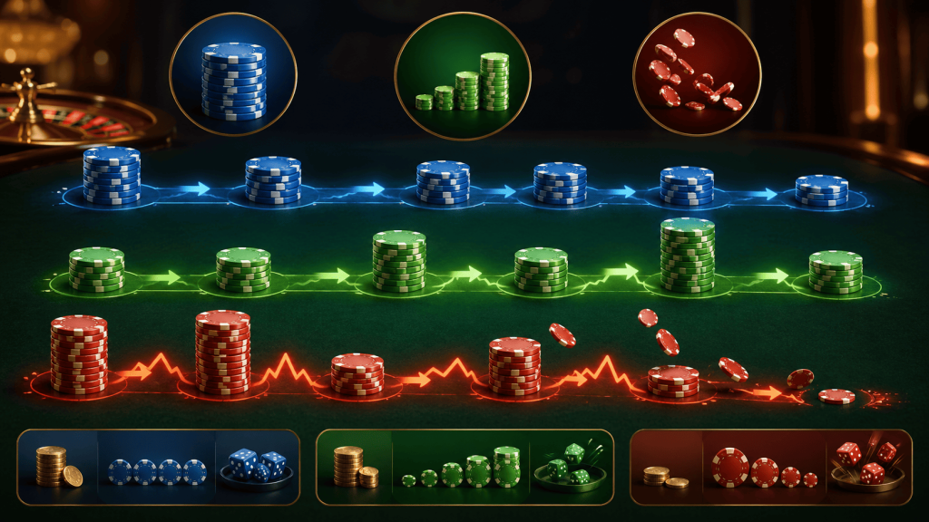 Positive progressions sit somewhere in the middle. They don’t drain your bankroll quickly during cold streaks because you aren’t chasing losses. But their success hinges on streak timing. Without an early string of wins, this system behaves similarly to flat betting, just with occasional bursts of volatility.